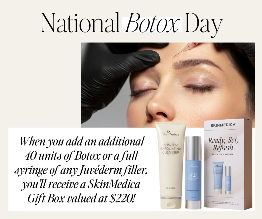 Add an extra 40 units of Botox or a syringe of Juvéderm filler to receive a FREE SkinMedica gift box!